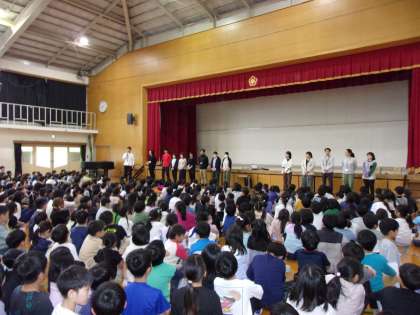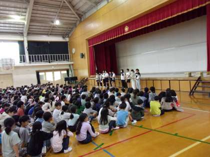 5月1日に、集会がありました。5月は憲法月間として、校長先生から「きまり」の話がありました。社会にはいろいろな「きまり」がありますが、そのきまりを「守るのか、守らないのか」は自分でしっかり判断して行動していく必要があります。常磐野小学校には『孝動』というスローガンがあります。みんなが安全に、安心して生活できるように、一人一人がしっかり考えて正しい行動ができる常磐野小学校にしていきたいです。