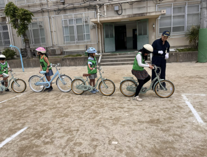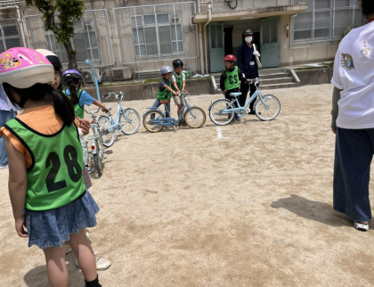 一時停止をしたり、右後ろを確認して乗ったりすることを学びました。