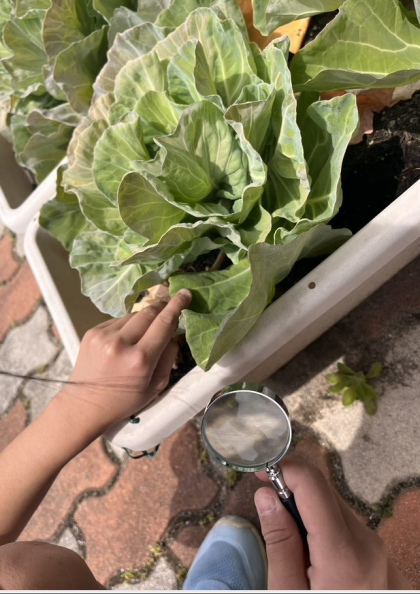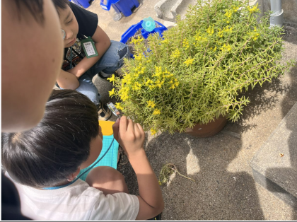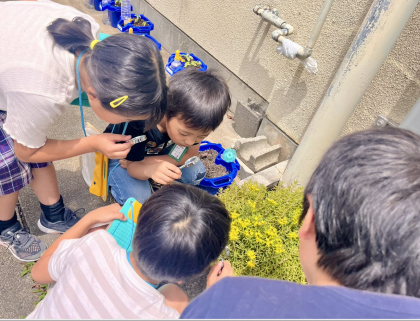 虫眼鏡を使って、ちいさな卵を観察しました。