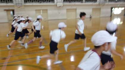 今日は新体力テストのシャトルランをしました。ペアになって友だちの記録を測定しました。後半になるとペースが上がってきて、苦しそうにしている友だちを「いけるぞ!」「頑張れ!」と大きな声で応援していました。