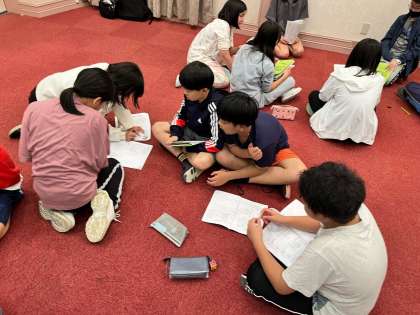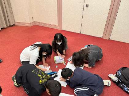 修学旅行の楽しさのあまり、自分たちの行動にルーズなところが見られることを振り返り、明日の行動の目標をグループで話し合いました。