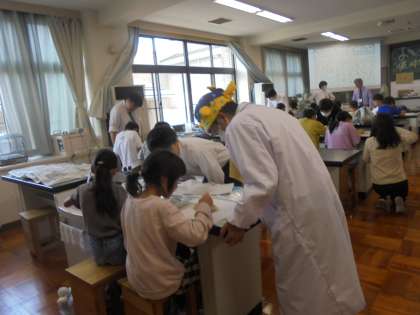 本日、嵯峨野高校において開催された「プラネタリウム見学」・「科学実験教室」へ行ってきました。プラネタリウムでは、本日の常磐野小学校の夜空からどんどん遠くの宇宙の世界まで紹介していただきました。高校生による素敵な解説を聞きながら、宇宙の広さ、惑星の美しさを体験することができました。また、4年生は、ちりめんじゃこに混じっている「チリメンモンスター」という様々な海の生物を見つけるのを頑張りました。小さなたこやいかなど夢中になって探していました。5、6年生は、空気に重さがあることを実験によって確かめました。実験途中の大きな音に歓声があがっていました。