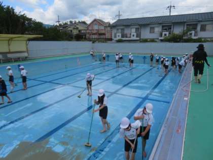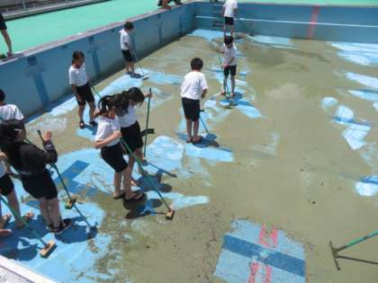 毎年、最高学年である6年生が、プールをきれいに掃除してくれています。今年は、今日の午前中に6年生がピカピカに掃除してくれました。