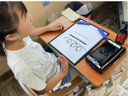 習字道具の準備の仕方や、筆の使い方などを学習し、線を書く練習をしました。