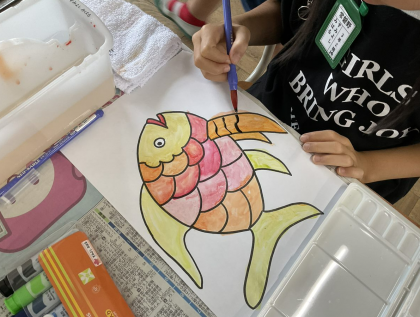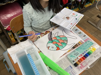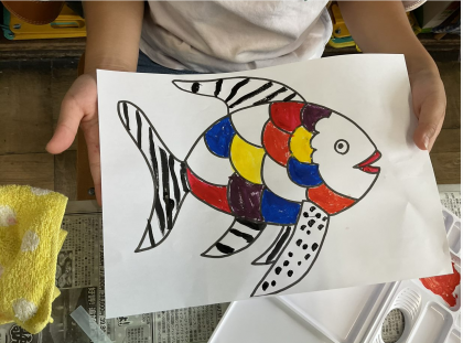 色の組み合わせや濃さを工夫することで、色とりどりの作品ができました。