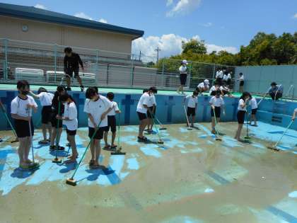 6年生のがんばりのおかげで、きれいなプールに変身しました。