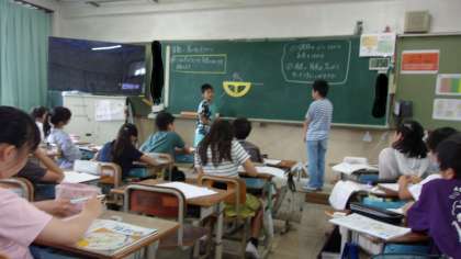 180度以上の角度の測り方を考えました。180度を超えた分を後から足して考えるという意見と360度から後から引くという意見と2種類の意見が出ました。分度器を上手く使うと大きな角度も測れるということを学習しました。