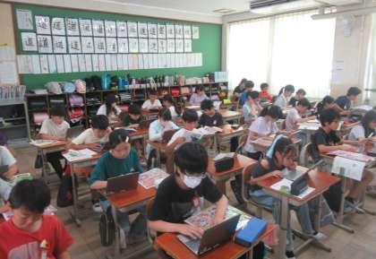 スーパーマーケットのちらしを見ながら、野菜や果物などの産地を確認して、日本地図に集めました。