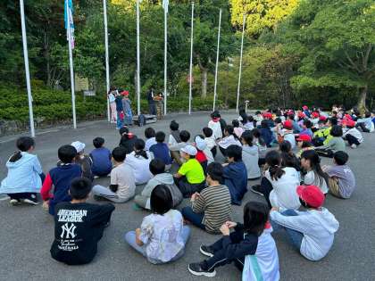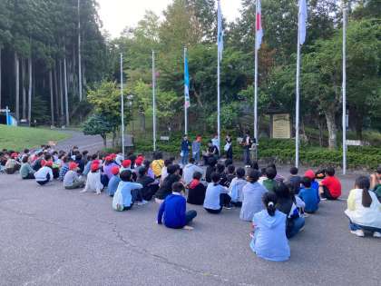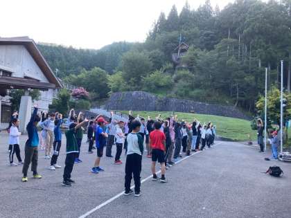玄関前に全員集合して、今日の活動について確認し、体操をしました。