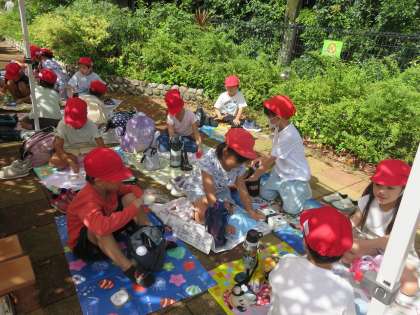 「〇〇はいっているで」,「おにぎり〇〇の形になってる!」って自慢していました。
