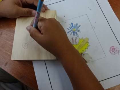 イメージマップデッサンを行ったり、木片に描いたりしました。