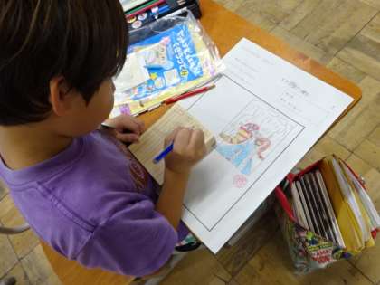 工夫して釘をうつというねらいをもって、木片に絵を描きました。