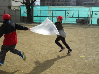 3クラス一緒に風で遊びました。