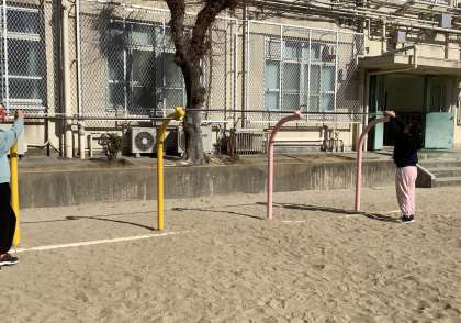 巻き尺を用いて、鉄棒やすな場など、運動場にあるものの長さを測りました。0の位置のあわせ方や、目盛りの読み方を確認しながら、担当を交代して取り組みました。曲がっているものの長さを測ることもできる、巻尺の便利さにもふれました。