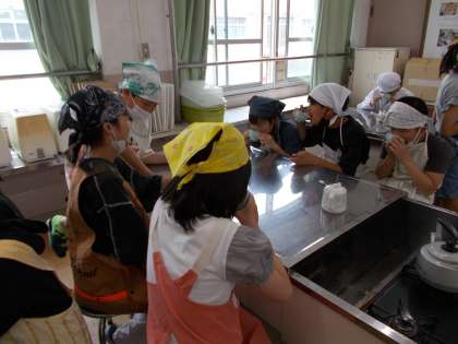 お茶をいれ終えた後,グループみんなで自分たちでいれたお茶の香りや味を楽しみました。