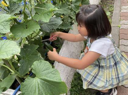 今日は、きゅうりの収穫をしました。
