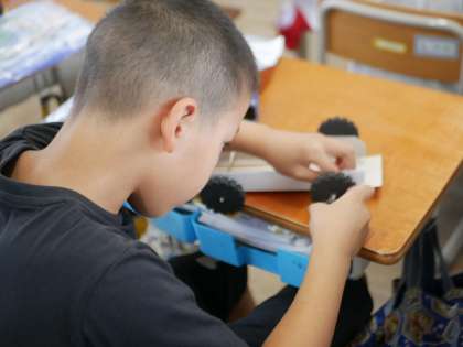 土台を作り終えた後、しっかり動くか調整し、どんな乗り物にしようかなと想像しながら楽しく作っています。完成が楽しみですね!