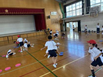今日は久しぶりにみんなで体育館で体を動かしました。まだまだ暑いので水分をこまめに摂りながらの体育でした。中学生も一緒にマイムマイムを踊ったり,赤チームと青チームに分かれて体慣らしをしたりして楽しみました。「めっちゃ汗をかいた」「疲れたけど動けて良かった」と言っていました。また来週も楽しみながら体を動かしていきましょう。