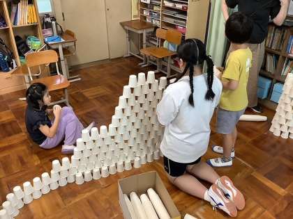 中学生が職業体験に来てくれたので、自立活動の時間に、カードゲームやコップ積みをしました。