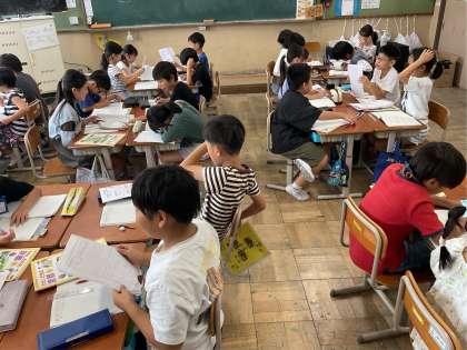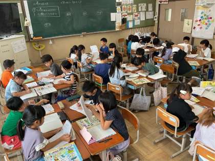 校外学習で学んだことをグループで交流しました。次の時間にはグループで交流したことを,全員で一つにまとめていく予定です。