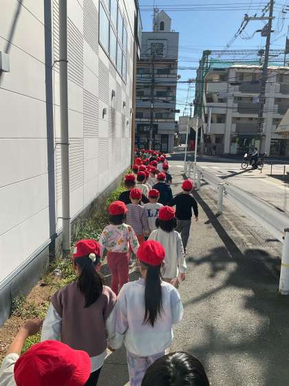 5校時に、生活科の学習として「秋見つけ」に行きました。初めて学年全員で学校外へお出かけしましたが、とても上手に並んだり、横断歩道を渡ったりすることができました。