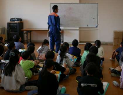 した。実際に備蓄倉庫を見させていただいたり、火事について学んだり、消火器を実際に使ったりとたくさん学ばさせていただきました。子どもたちは「家にどれくらい備蓄されているのか気になる」や「たくさん学ぶことができた」と一生懸命メモをとりながら学ぶ姿が見られました。