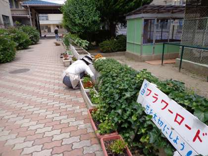 フラワーボランティアさんが,子どもたちだけでは十分できないことを