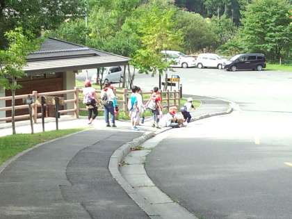 1日目の午後,今回の長期宿泊学習最初の活動「スコアオリエンテーリング」です。まず各グループメンバーの結束を固めるために,与えられた課題をグループのメンバーで協力して,話し合いながら,解決していく,花背山の家所内をいっぱいに使ったゲーム形式のフィールドワークです。