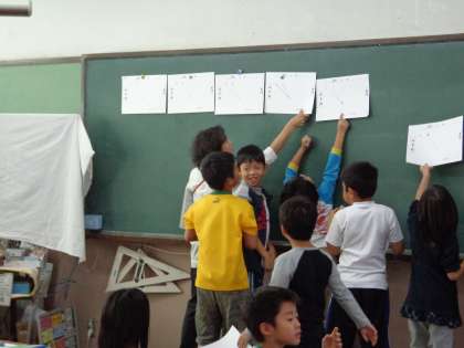 まず影の位置が変化したカードを黒板に貼っていきます。