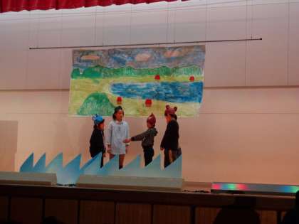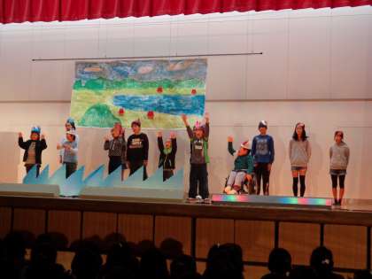 ひまわり学級の子どもたちがせいいっぱいの演技をします。
