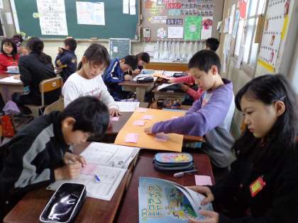 今日は,そのふりかえりを各教室でしました。