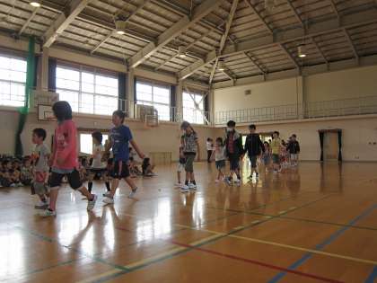 今日の1校時,体育館で1年生を迎える会を行いました。