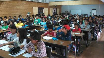 さあ,いよいよ3泊4日の花背山の家での長期宿泊学習最後の取組です。4日間の学習活動を振り返って,気づいたこと感じたこと考えたこと学んだことを思い返し,ひとつひとつ記録として,しおりに書き込みます。そして,後日,全校児童の発表するために,定型詩(俳句や川柳)にまとめます。絵やカットも添えて視覚的に思い出をメモリーしておきます。この後の退所式,最後まで常磐野小学校5年生の素晴らしさを保ってほしいと思います。