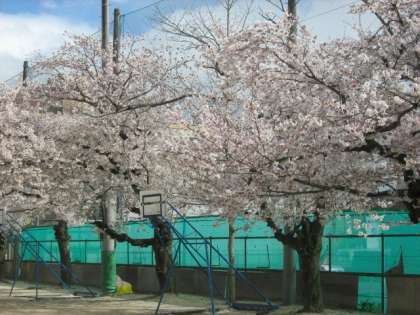 4月にはいっての急な気温の上昇で,校門から続く桜の木もつぼみが一気に開花し,美しい花を咲かせています。満開近しです。