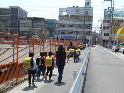 今日から4月18日(金)まで,1年生は帰る地域別に分かれて集団下校で帰ります。一人でも安全に帰るための練習です。