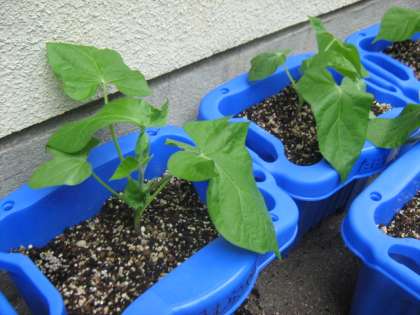1年生が毎日、お世話をしているあさがおの背たけが、だいぶん伸びました。