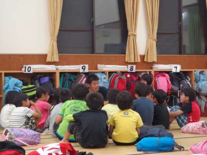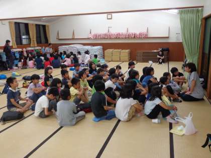 今日1日の振り返りを係ごとにそして学級ごとに行いました。2日目は90畳で寝るのが男子、女子はバンガローで寝ます。友達と寝るのも楽しみの一つです。