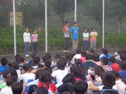 山の家には、4校が来ています。まずそれぞれの学校紹介があり、代表の2人が発表してくれました。覚えてしっかり言ってくれました。