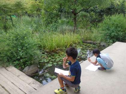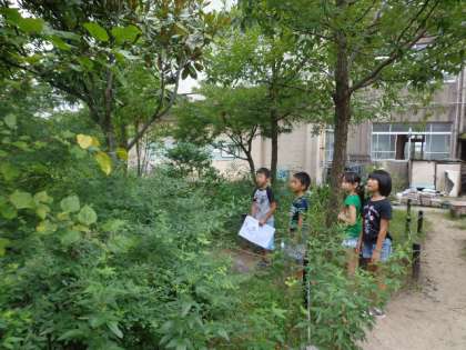 3年生の児童が,総合的な学習の時間に,ネイチャーランドで自然見つけをしていました。実のなる木や植物をいろいろと探していました。