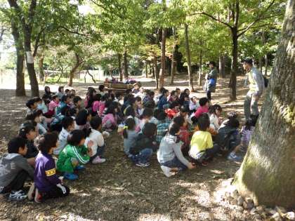 よい天気に恵まれ,1年生みんなで双ケ丘で探検に行ってきました。春と違った双ケ丘の様子に子どもたちは驚き,また喜んで探検していました。どんぐりやきれいな落ち葉,枯れ枝や松ぼっくりなどいろいろな秋をたくさん見つけていました。