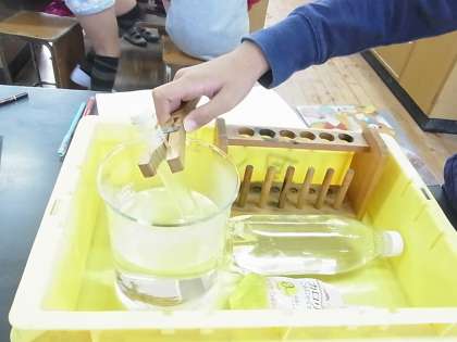 4年生が、理科で、温度による空気の体積変化について学んでいました。