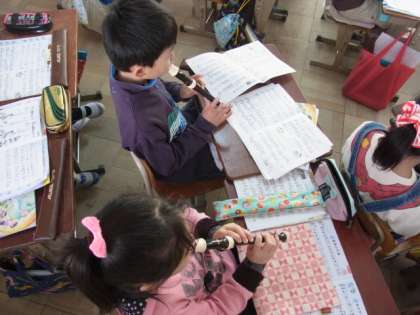 1組は理科、2組は音楽、3組は図工の学習をしていました。