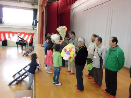 校長から感謝状をお渡ししたほか、1年生からは、花束のプレゼントもありました。