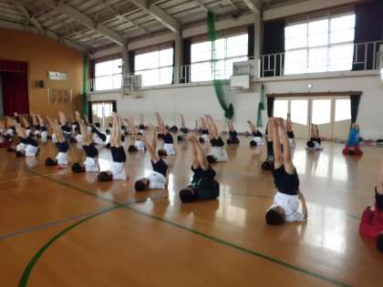 今日の体育は体育館で,運動会に向けて取り組みました。