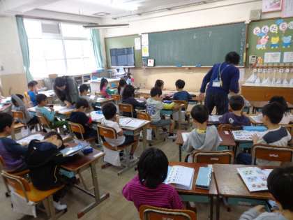 初めはなかなか集中が続かないものですが,がんばって国語や算数の学習に臨んでいました。