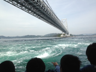 渦潮見学をしました。観光船から,橋の上から。迫力満点でした。宿舎に到着,入浴のあとにいよいよお楽しみの夕食です。