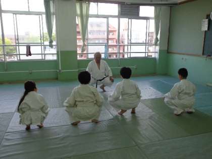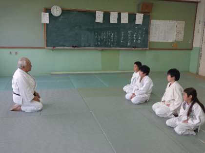 今日は地域の指導者の荒木先生に柔道着の着方や正座や蹲踞の仕方,心構えなど基本になることを教わりました。