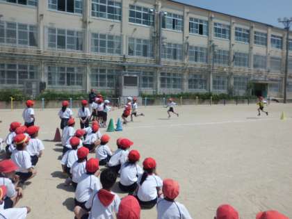 最初はとまどっていた子どもたちも,友達からの声援をいっぱい受けて,一生懸命走っていました。
