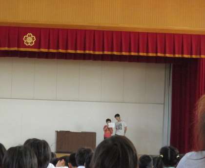 頼もしく新しくなったメンバーの児童会のもと,児童朝会がありました。