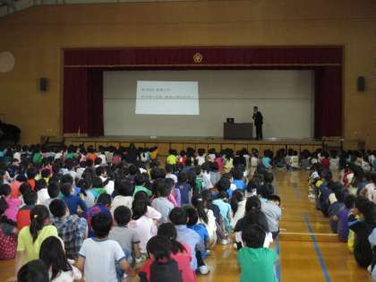 校長から「ともだちをたいせつに」するために「にじいろのしまうま」の絵本を題材としたお話がありました。森の奥できれいな虹色のしまうまが生まれ,動物たちも新しい仲間ができて大喜び。ところが、雨が降らない日が続き川の水がなくなってしまいました。虹色のしまうまは仲間のためにお願いをするというおはなしです。